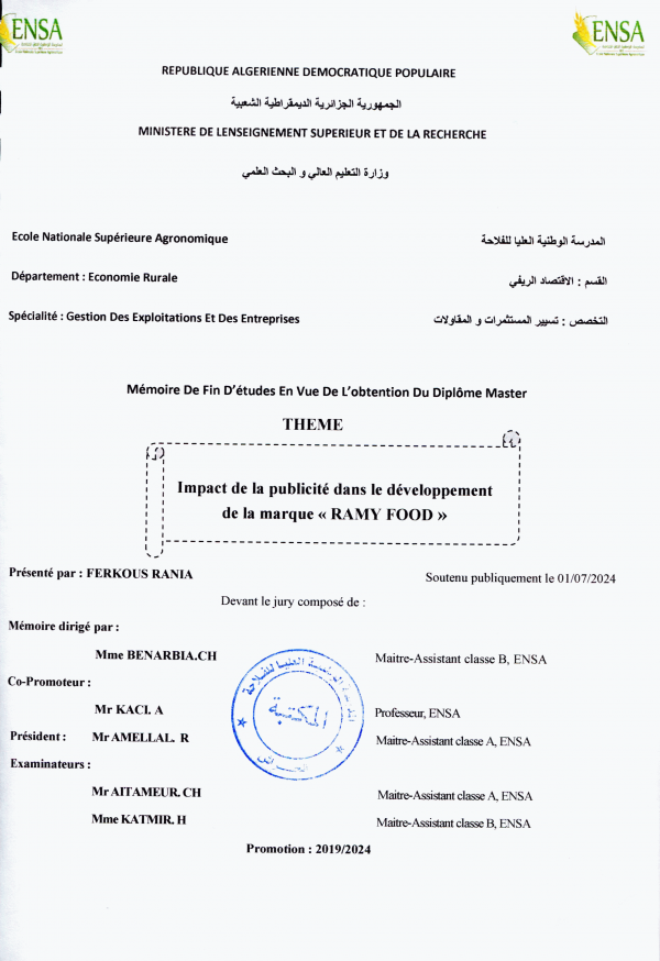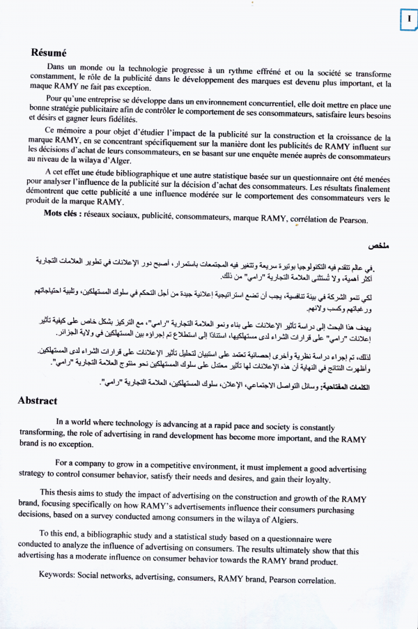 Impact de la publicité dans le développement de la marque « RAMY FOOD » Rania Ferkous