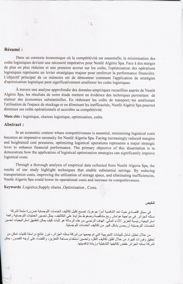 Optimisation de la chaine logistique de l'entreprise Nestlé Imane Boumaza