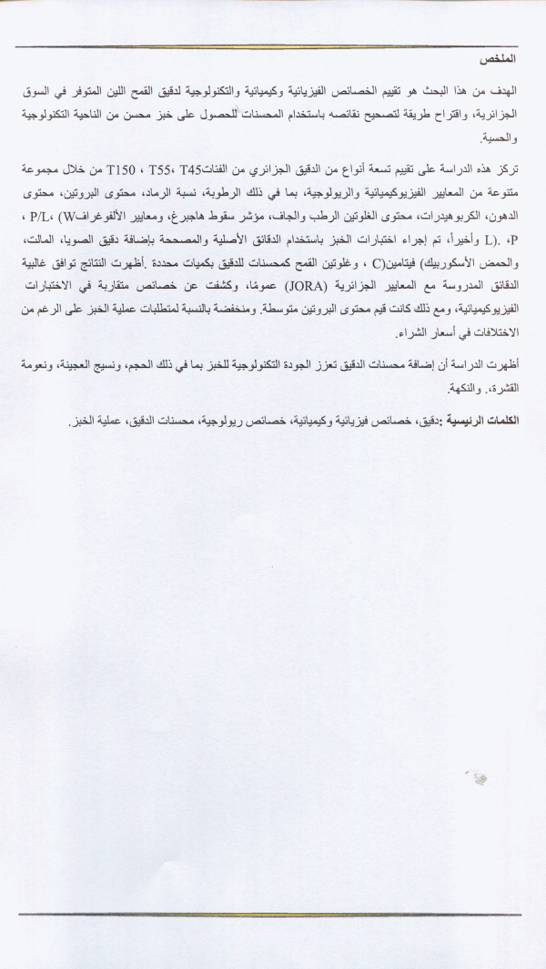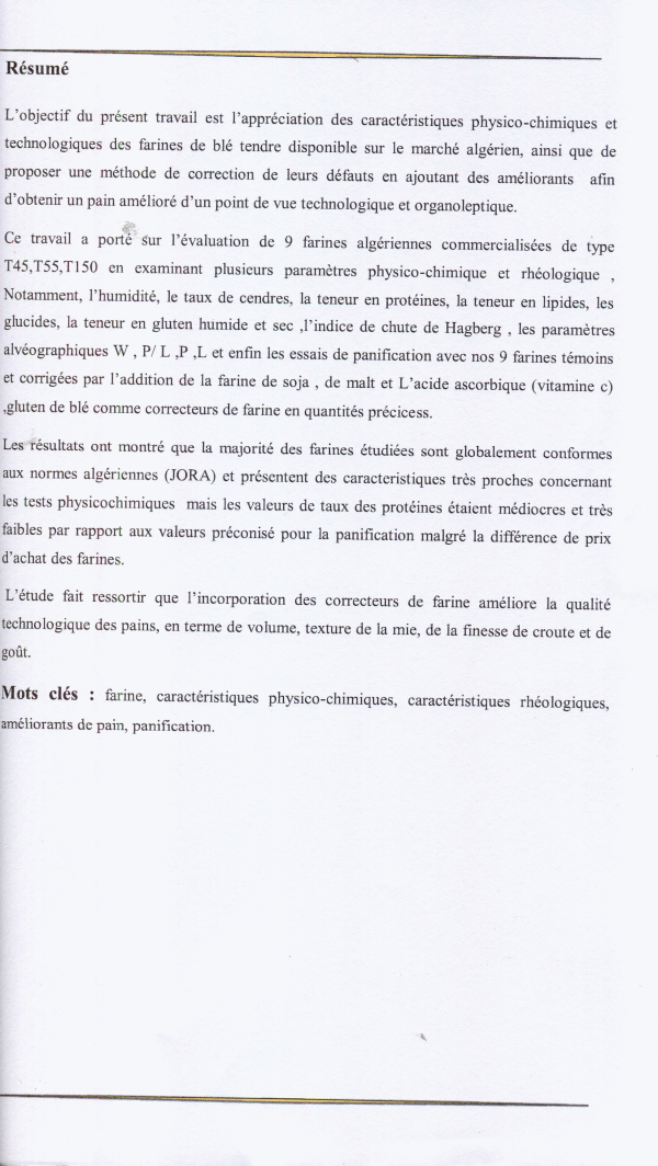 Appréciation de la qualité physico-chimique et technologique des farines algériennes et méthodes de correction Sara Yousra Bouchama, Wafa Bouabdellah