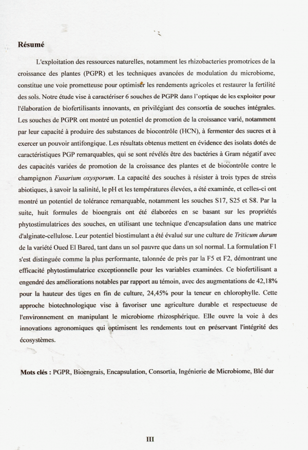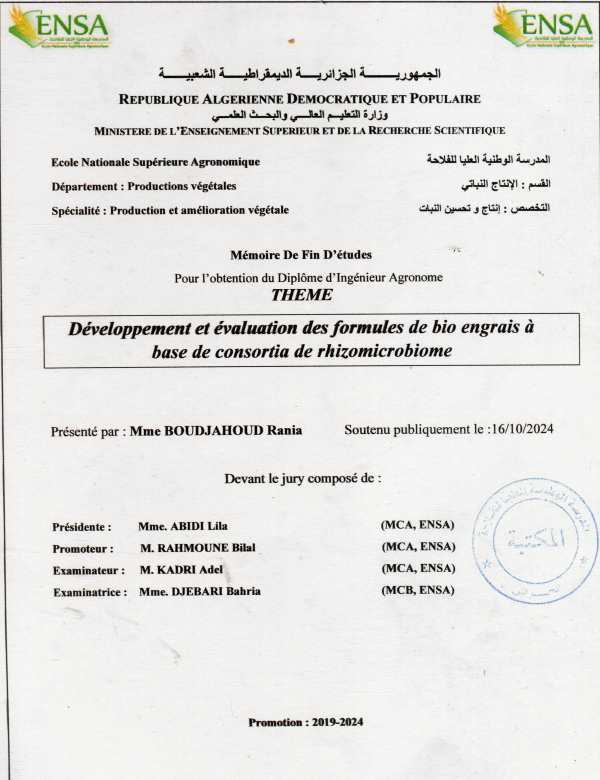 Développement et évaluation des formules de bio engrais à base de consortia de rhizomicrobiome Rania Boudjahoud