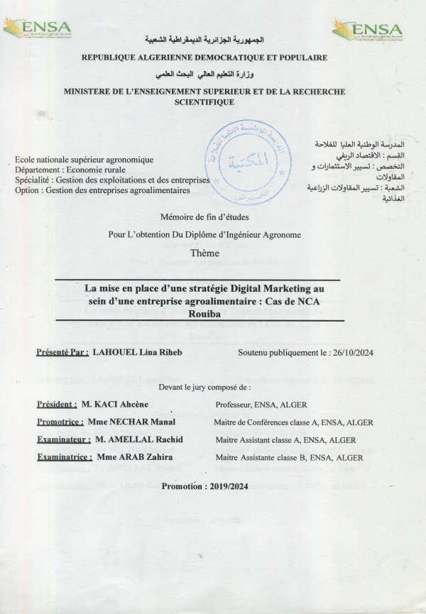 La Mise en place d'une stratégie digital marketing au sein d'une entreprise agroalimetaire cas de NCA Rouiba Lina Riheb Lahouel