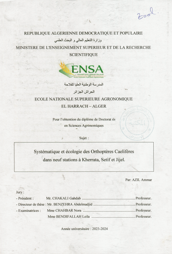 Th. Doct. : Agron. Doctorat ENSA : département de Zoologie Agricole El Harrach