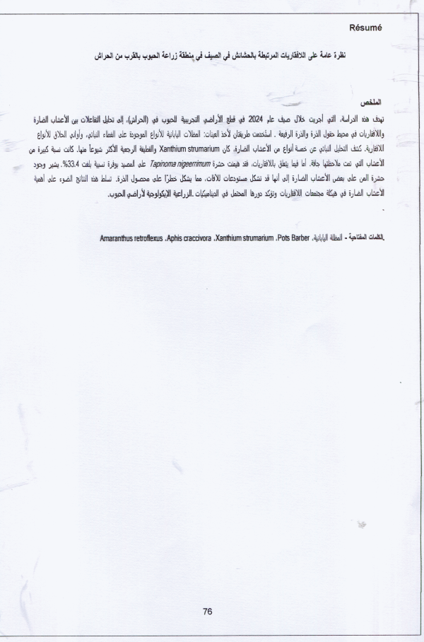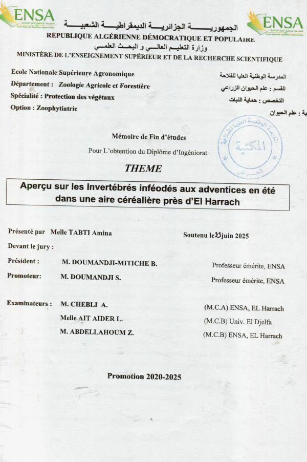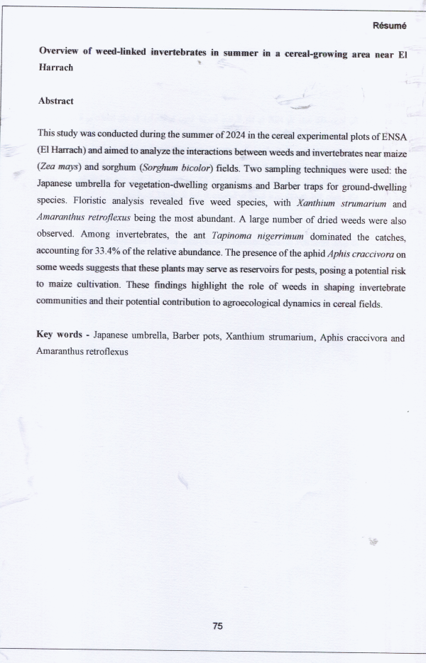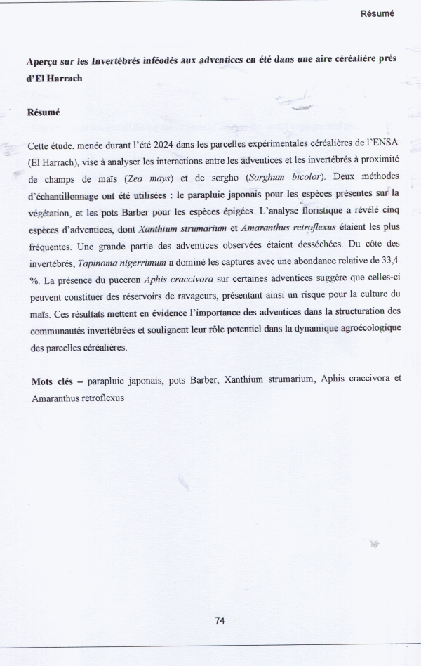 Aperçu sur les invertébrés inféodes aux adventices en été dans une aire céréalière près d'El Harrach Amina Tabti