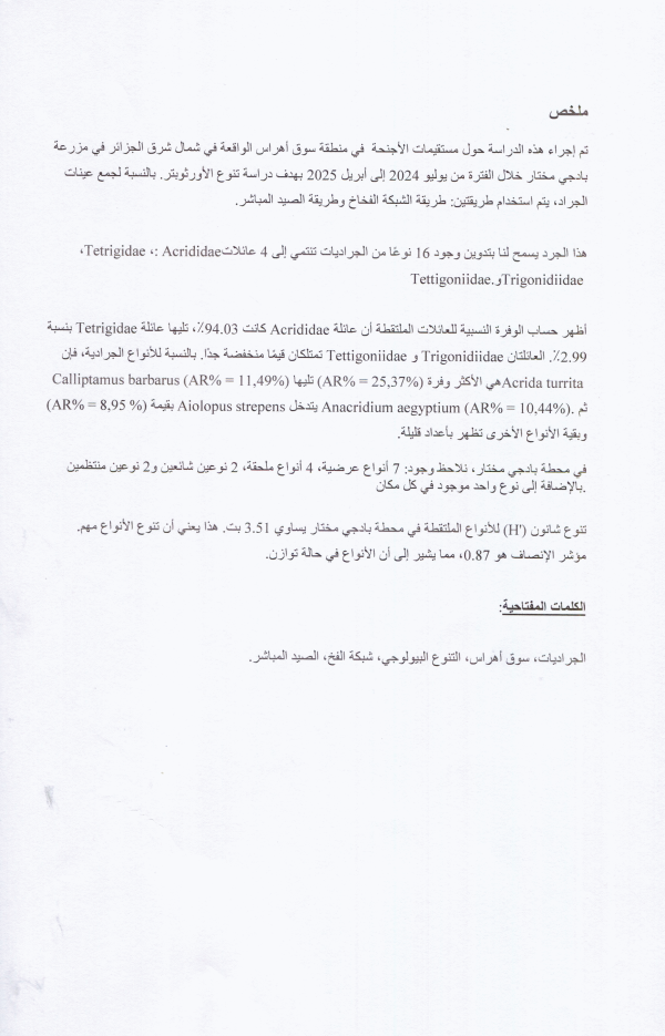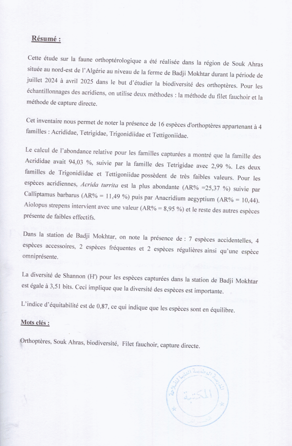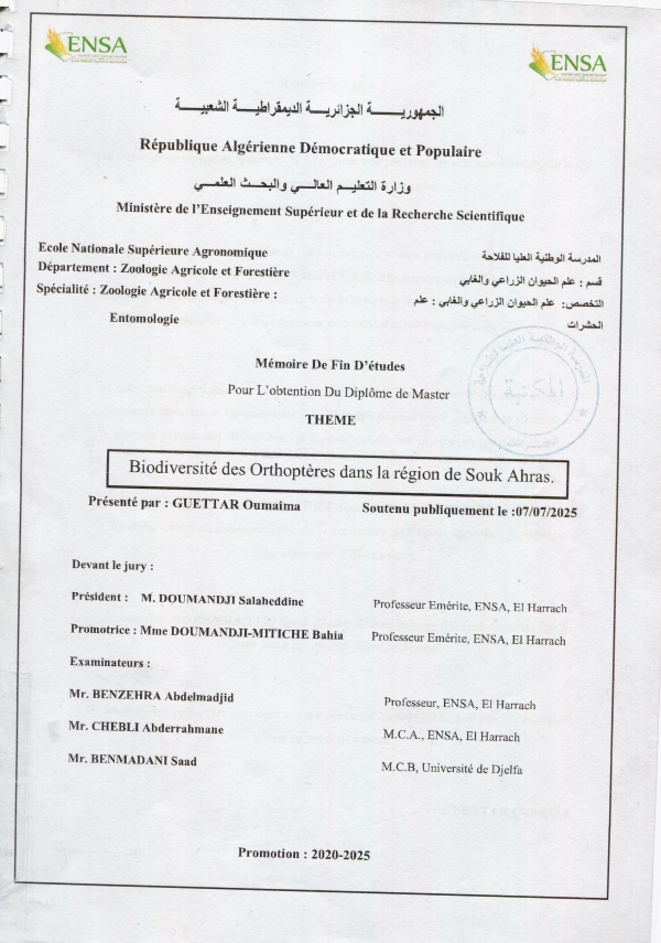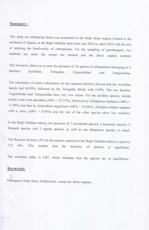 Biodiversité des orthoptères dans la région de Souk Ahras Oumaima Guettar