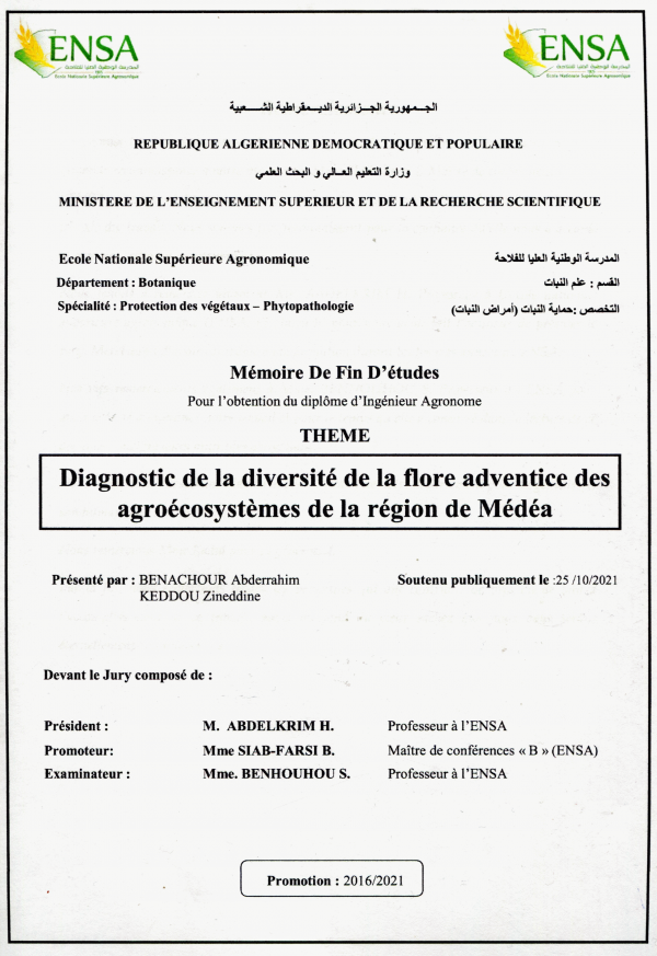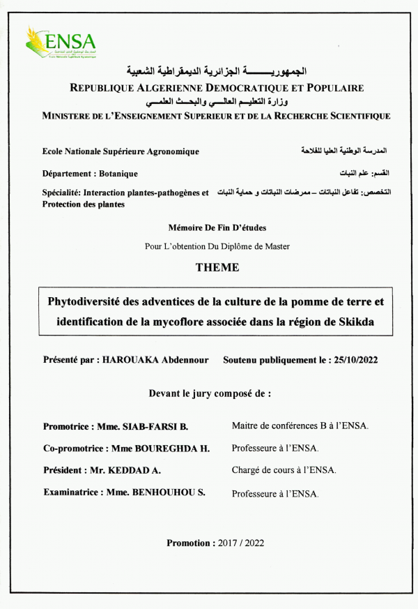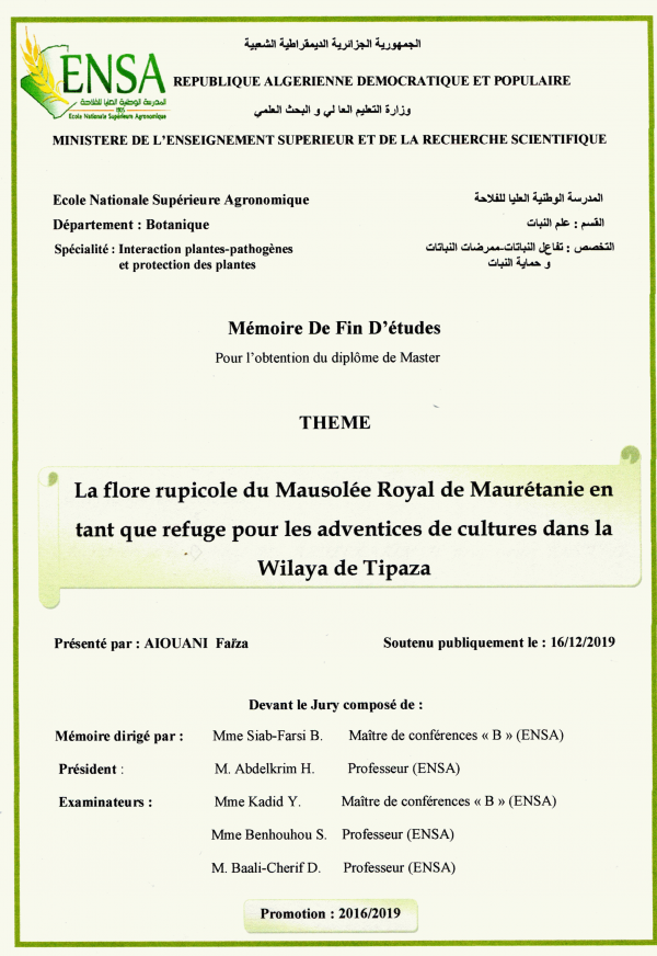 Adresse: Ecole Nationale Supérieure Agronomique Hassen Badi - El Harrach Alger, Algérie