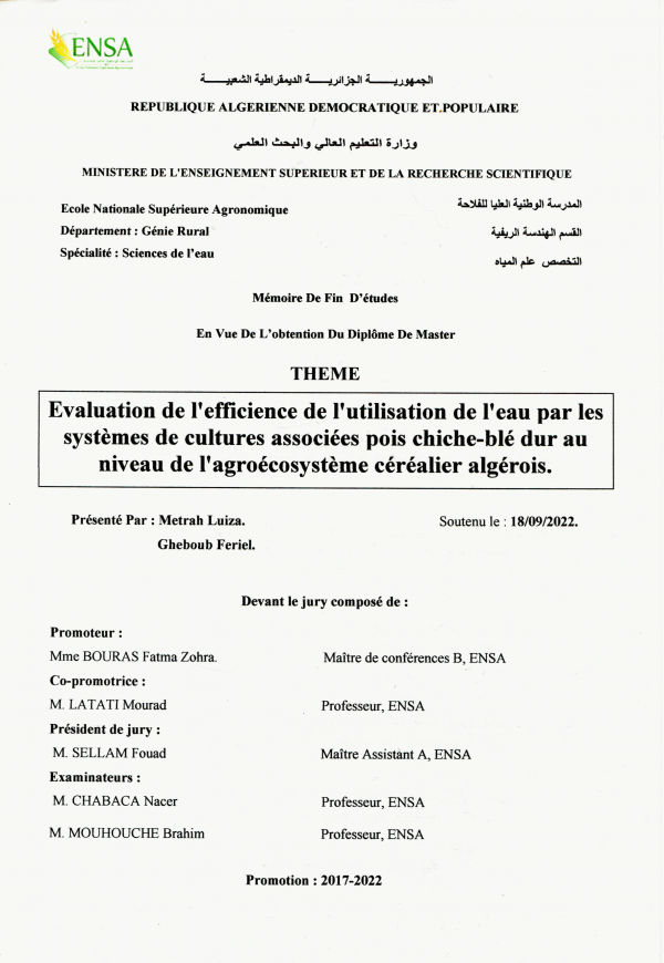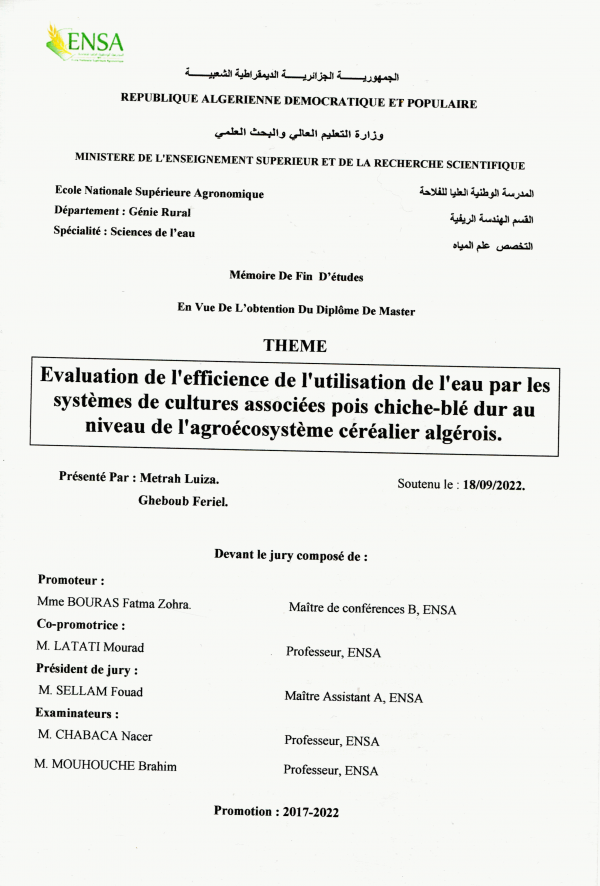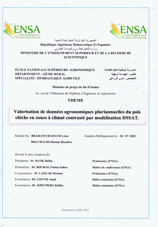 Adresse: Ecole Nationale Supérieure Agronomique Hassen Badi - El Harrach Alger, Algérie