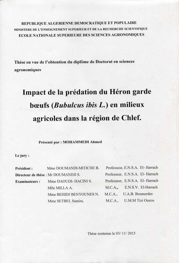 Etude de l'avifaune de la Mitidja Djamel Bendjoudi par
