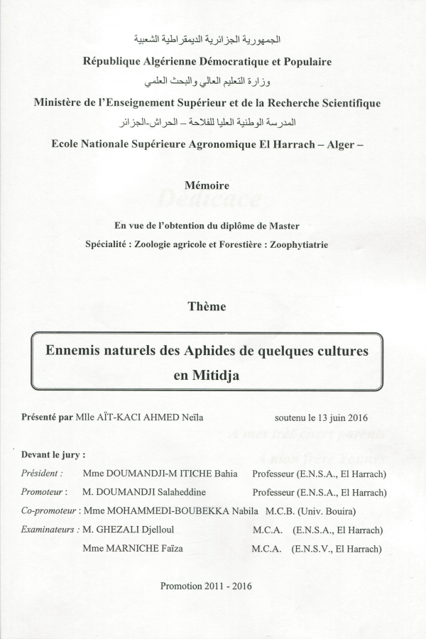 Ennemis naturels des Aphides de quelques cultures en Mitidja Neîla Aît-kaci ahmed par