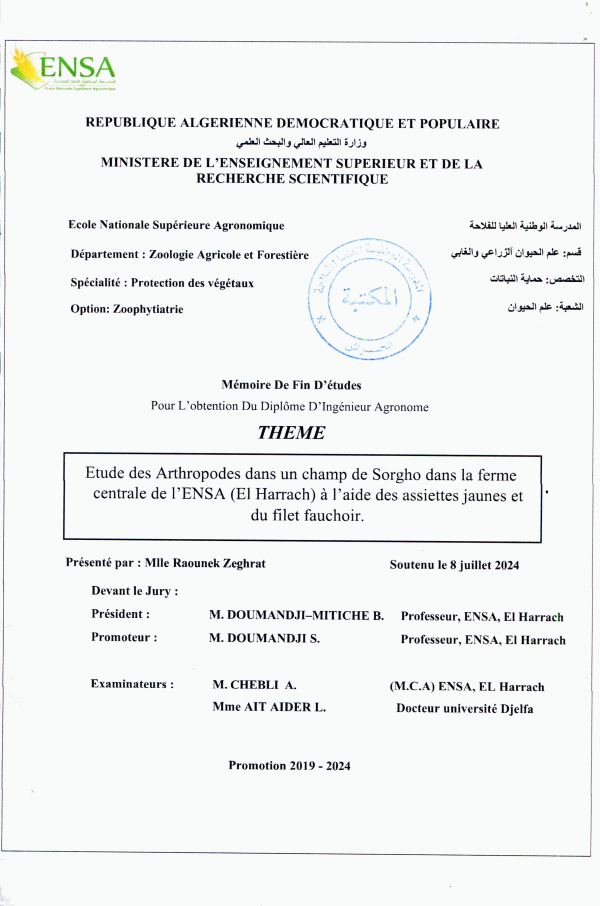 Note de thèse : Mém.-ing. : Agron. Ingénieur ENSA : département de Zoologie Agricole